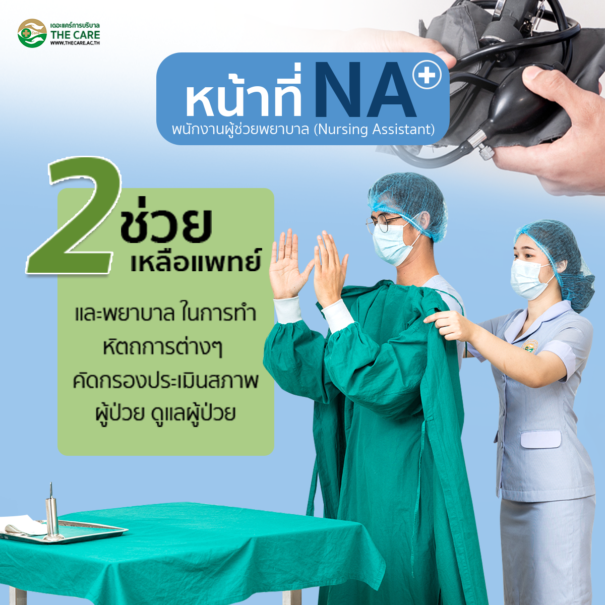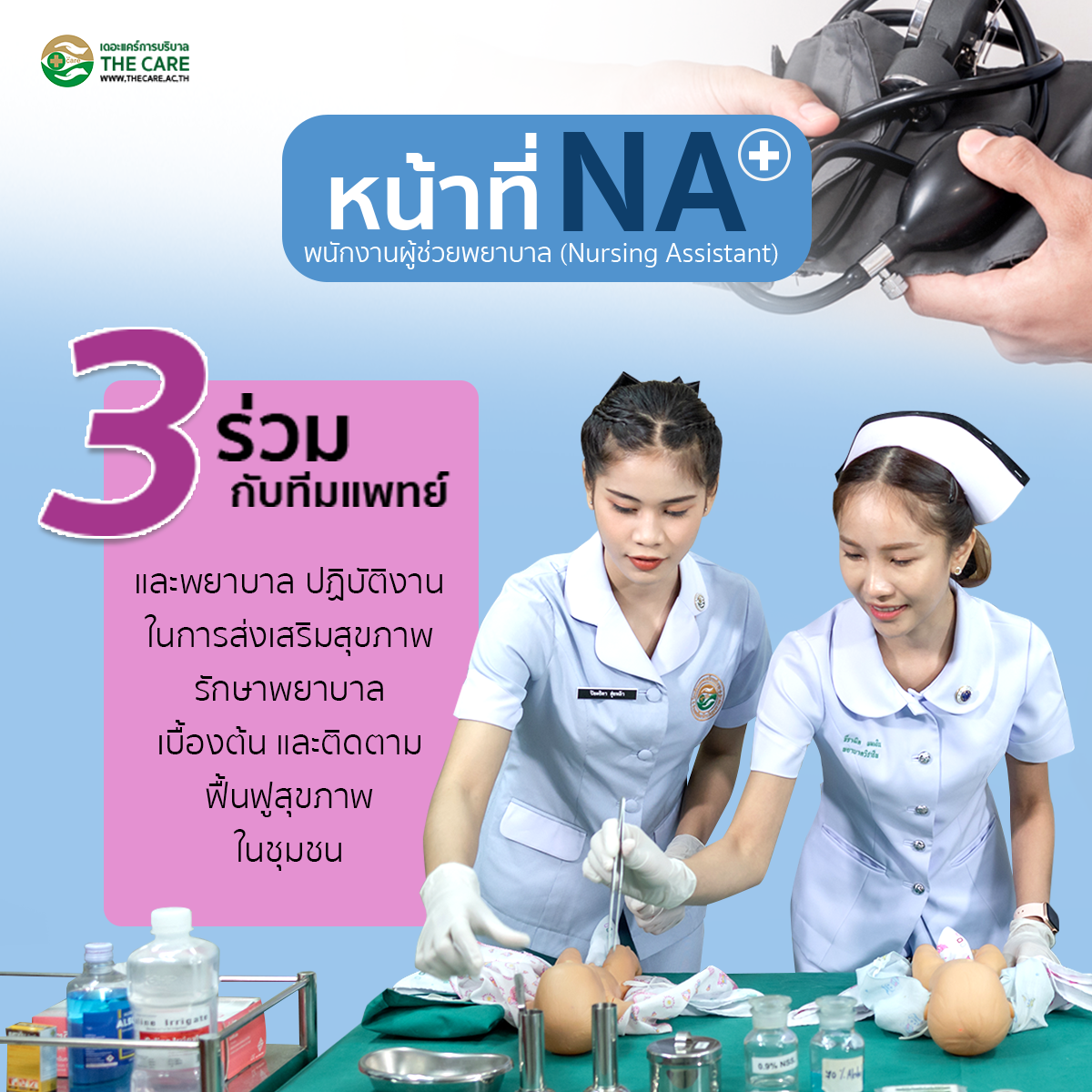 พนักงานผู้ช่วยพยาบาล หลักสูตรเรียน 6 เดือน เรียนภาคทฤษฎี 3 เดือน ภาคปฎิบัติ 3 เดือน
